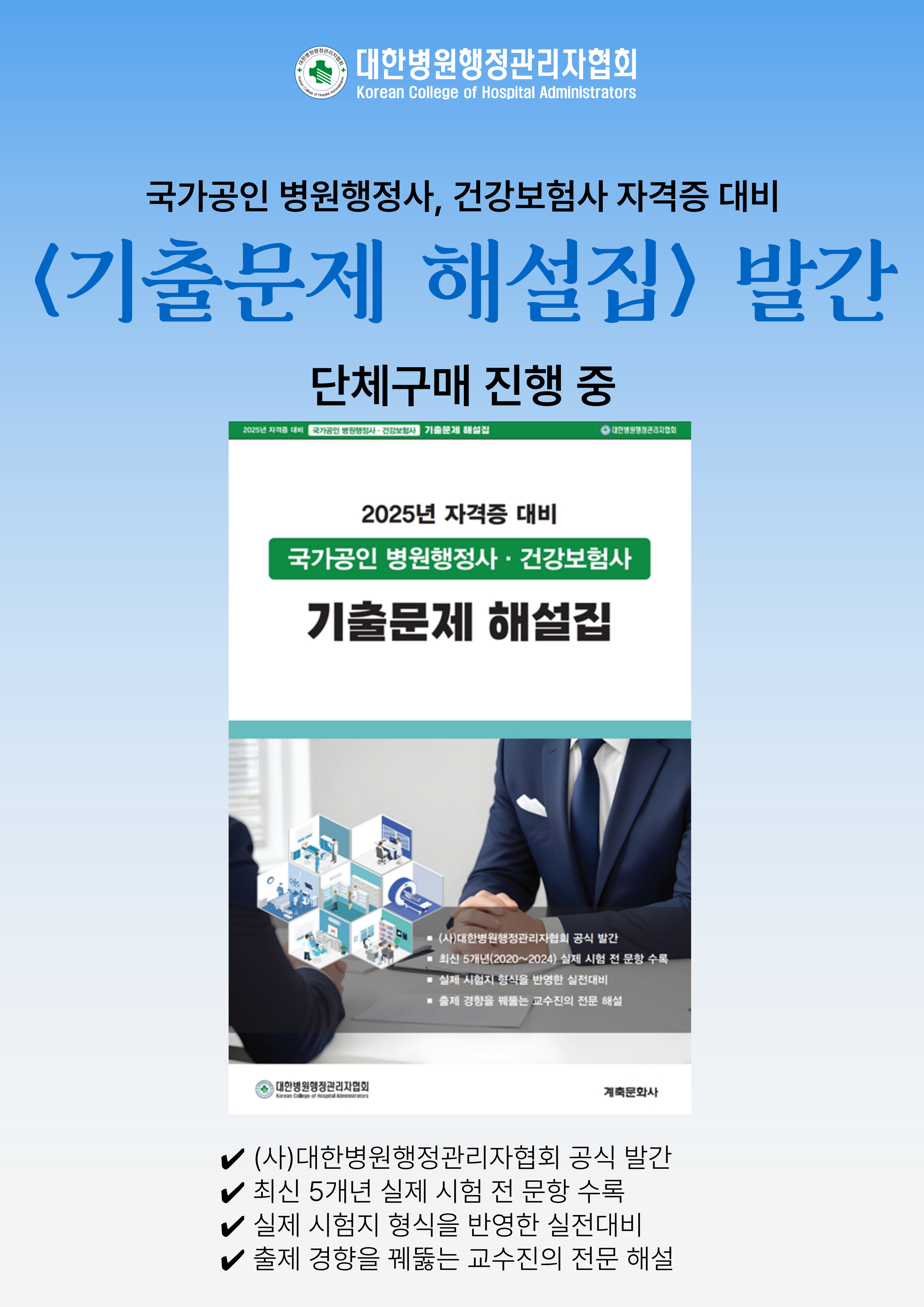 자격시험(병원행정사, 건강보험사) 기출문제 해설집 발간 및 사전 구매 예약 안내