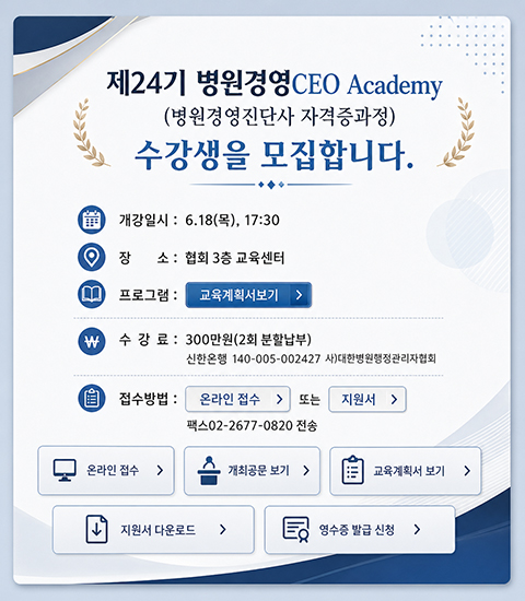 제24기 병원경영 CEO Academy 수강생을 모집합니다.
