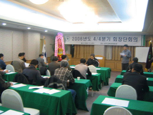 협회는 12월 2일 경주에서 2006년도 4/4분기 회장단회의를 개최했다. 이번 회장단 회의는 2006년도 회무결산, 협회 사업을 점검하고 한해를 마무리 하는 자리가 됐다. 이날에는 하반기 임시 이사회 개최, 병원행정종합학술대회 개최 등 회무보고와, 병원경영진단사규정 및 지역조직 활성화에 관한 사항에 대해 논의했다.