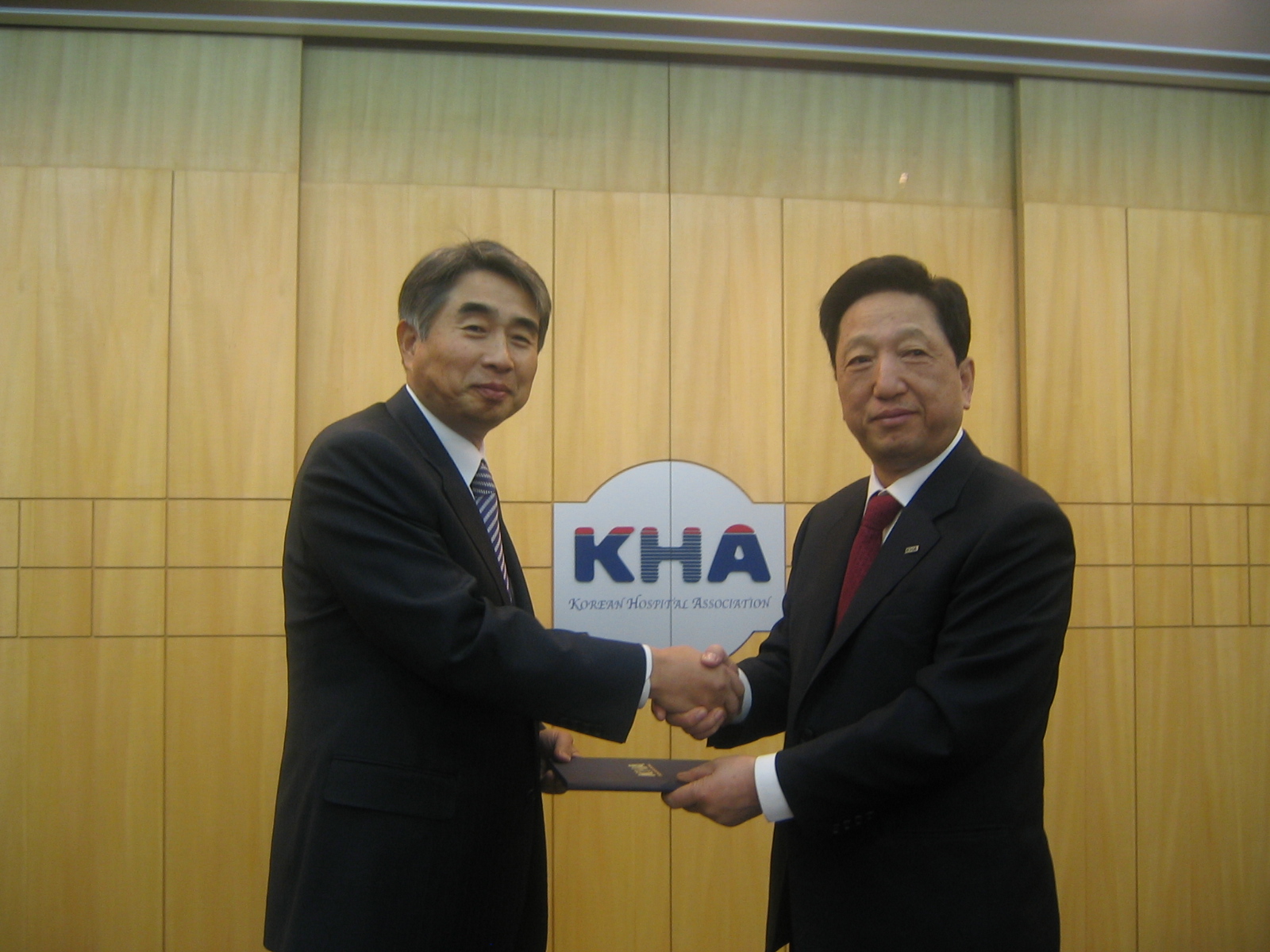 "우리협회와 병협 업무협력 다짐” 병협 준회원 가입으로 업무협력 전기마련 임배만 회장은 3월 8일 김철수 병원협회장에게 '병원협회 준회원 위촉장'을 수여 받았다. 우리 협회의 병협 준회원 가입을 계기로 향후, 우리협회와 병협은 병원경영분야와 교육프로그램에 대한 정책적이고 실질적인 협력과 행정관리자들의 폭넓은 참여가 이루어 질 것으로 예상된다.