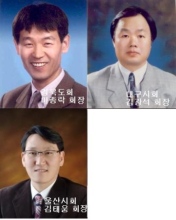 2007년 신임 시도회장을 소개합니다. 경북도회 마종락 회장(포항 선린병원 총무팀장) 대구시회 김광석 회장(경북대병원 교육수련부) 울산시회 김태웅 회장(우리학문병원 기획실장)