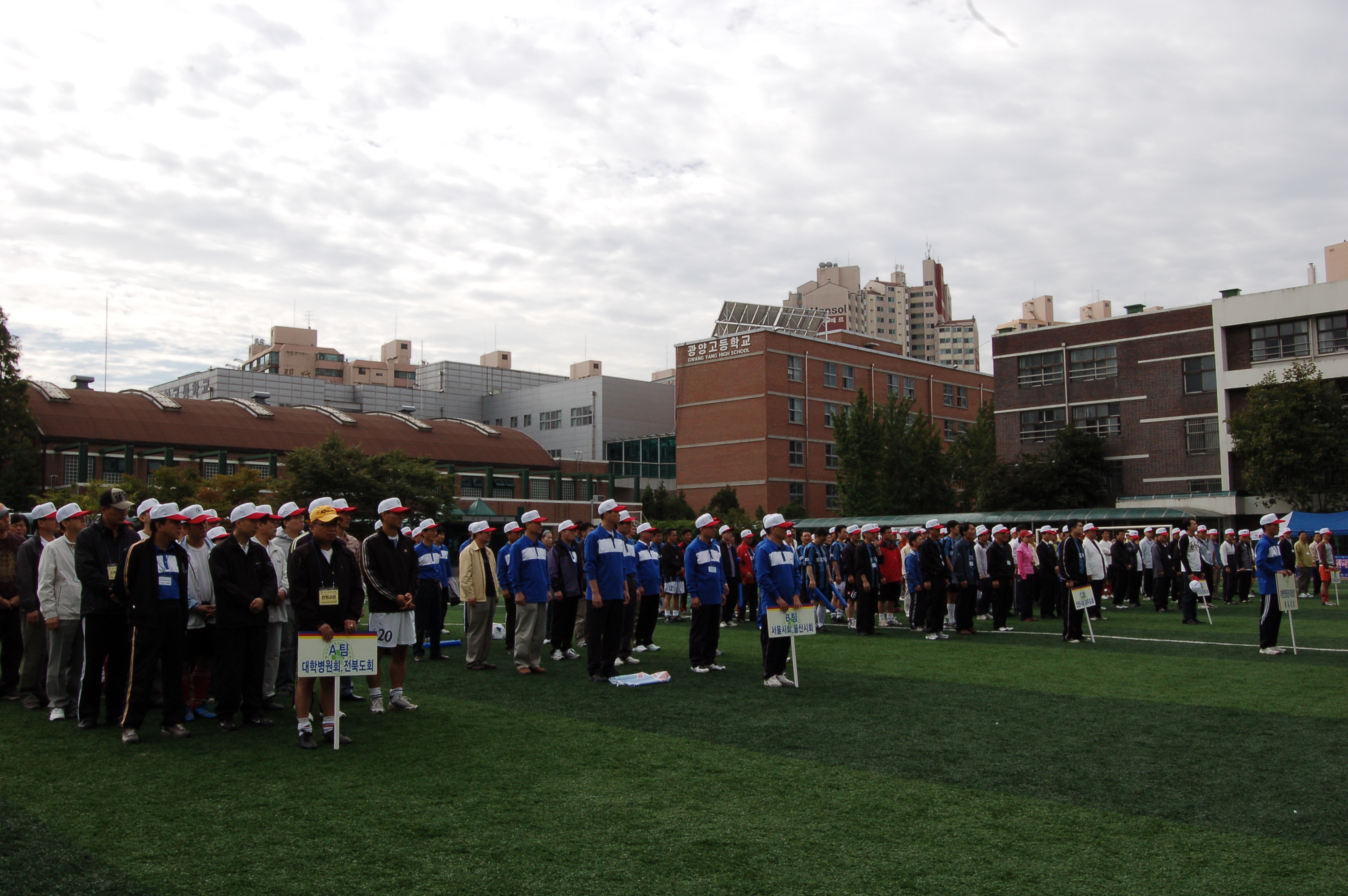 제1회 대한병원행정관리자협회장기 체육대회 개최 전국에서 300여명 참석, 보건복지가족부와 친선경기 진행 협회(회장 임배만)는 9월 28일(일) 오전 10시 30분 광양중학교(광진구 소재)에서 약 300여명의 회원이 참석한 가운데‘ 제1회 대한병원행정관리자협회장기 체육대회’를 개최했다. 이번 체육대회는 전국 16개 시도회의 활성화와 회원간의 화합을 위해 올해 처음 개최하는 것으로 서로의 단합과 일체감을 나눌 수 있도록 시도회 별로 7개팀을 구성했다. 특히 지난해 창단한 병원산학협력교수회(위원장 정두채)가 시도회와 함께 경기를 했으며 보건복지가족부 축구팀의 친선경기도 진행했다. 이날 행사에는 축구와 족구경기를 했으며 축구우승에는 군진회, 경북도회, 대구시회 연합팀이, 족구우승에는 대학병원회, 전북도회 연합팀이 차지했다. 임배만 회장은 “시도회가 거리상의 이유로 상호 친목 할 수 있는 기회가 적었다”며 “이번 체육대회를 통해 서로를 이해하고 단합하는 계기가 되었다”고 말했다.