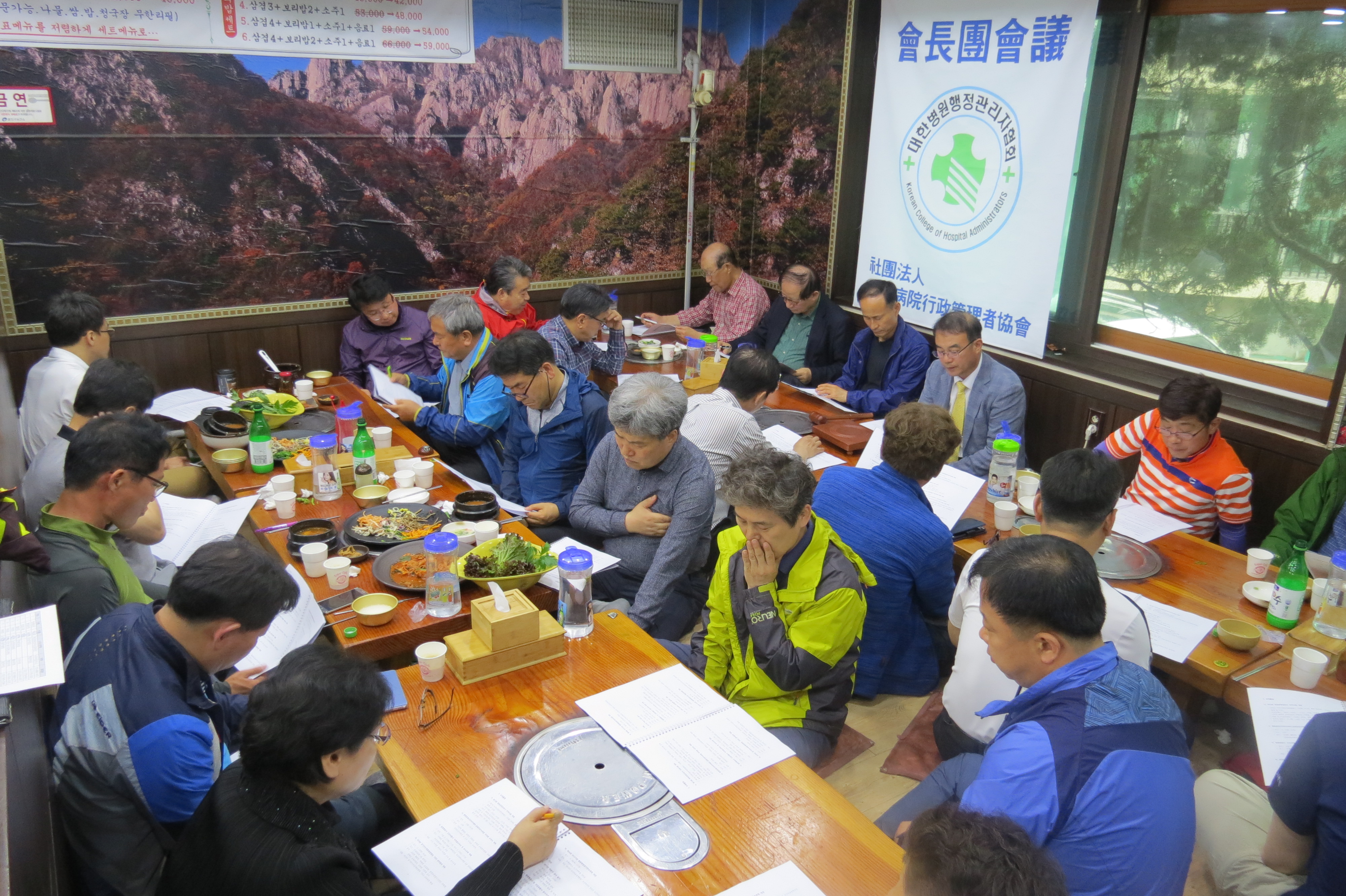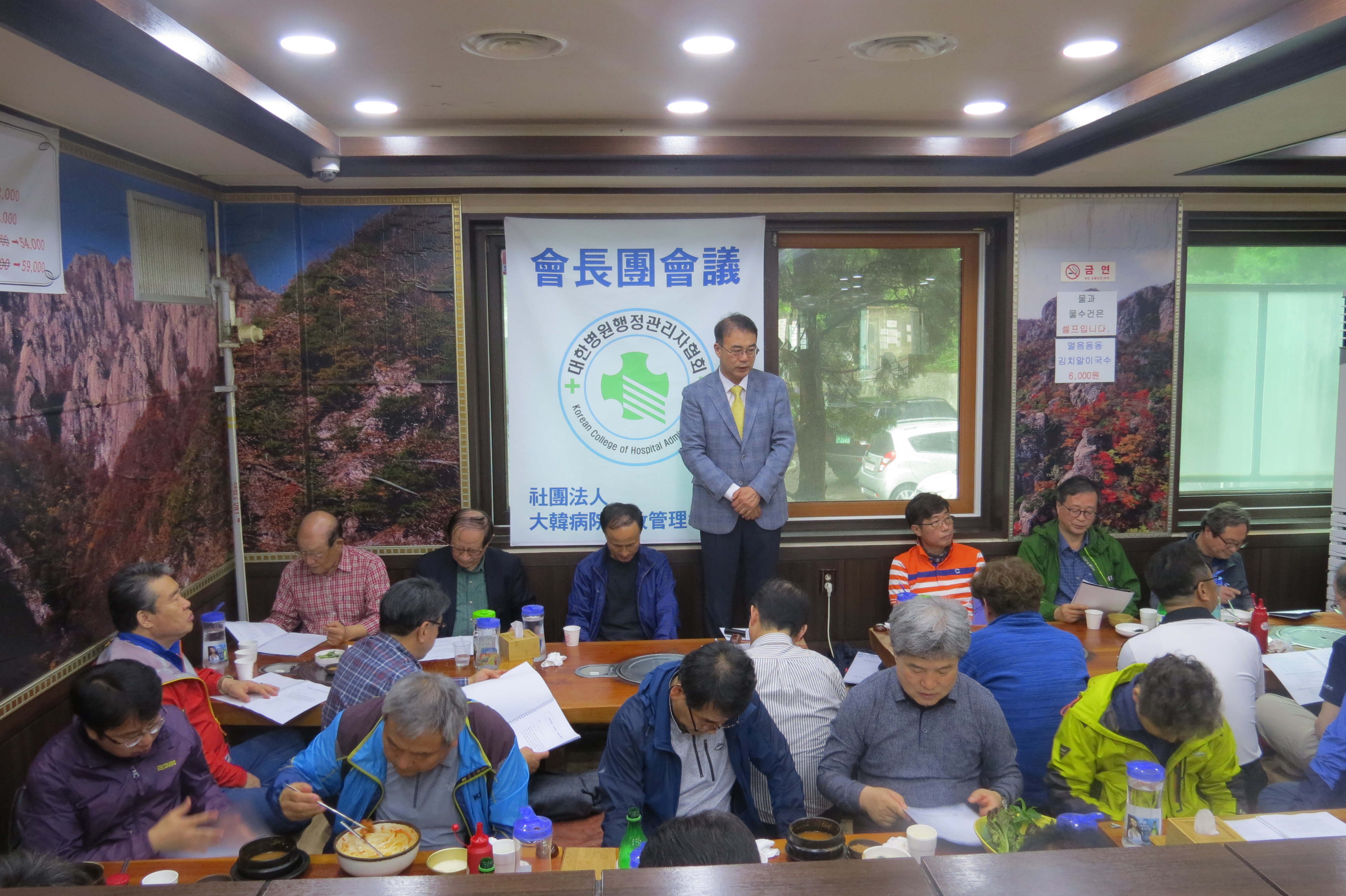 우리협회 2분기 회장단회의가 5월12일(토), 오전 12시 30분 아차산에서 개최되였다. 이날 회장단회의에서는 회무보고로 1/4분기 회장단회의 및 정기이사회, 대의원총회 개최, 각종 간담회 개최, 협회 교육사업, 2018년 시·도회 연회비 납부현황, 시·도회별 약정발전기금 납부현황, 2018년 장기연수과정 참여 요청, 협회 중장기발전을 위한 병원행정인 설문조사 실시, 2017년 감사지적 사항에 따른 후속 조치, “대한병원협회, 의무기록협회와 공동 주최” 의료정보 Open Source의 글로벌 동향에 대한 토론회 개최, 산학협력교수회 우수대학(학과) 및 교수 포상(안) 제안 등 검토위원회 개최, 2018년 좋은병원만들기 경영지원사업 공고에 대한 보고가 있었다. 또한, 시도회별 건의사항에 대한 의견 개진과 이를 청취하는 순서로 진행되었다.
