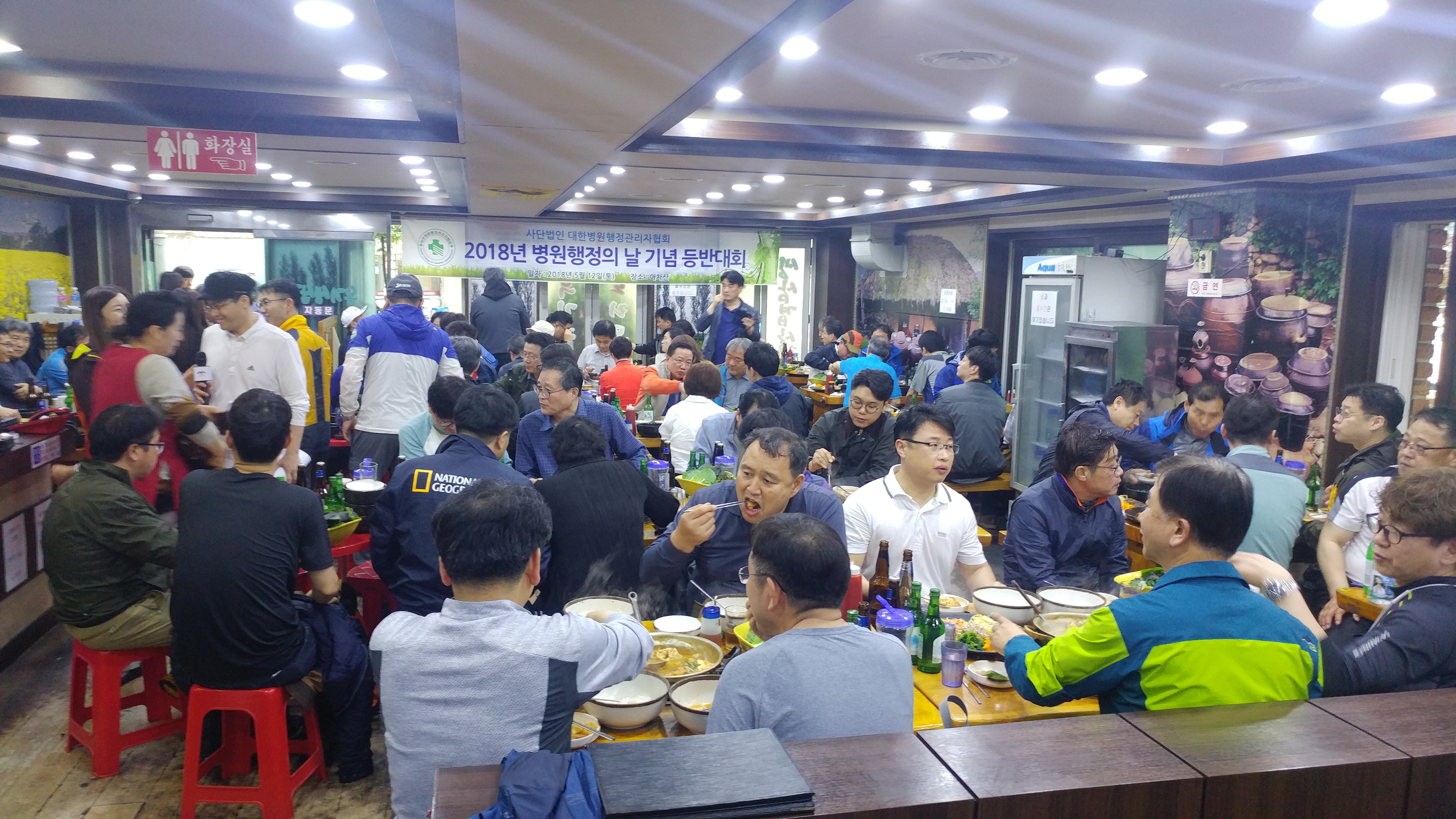 병원행정의 날 기념 등반대회를 지난 5월 12일(토), 오후 2시부터 오후 6시30까지 서울시 광진구 소재 아차산에서 개최하였다. 따사로운 초여름을 맞이하여 실시한 이번 등반대회는 전국 18개 시·도회 회원 170여명이 참석하여 단합된 협회의 저력을 보이는 자리가 되었다. 권성탁 회장은 인사말을 통하여“오늘 이 산행이 한 동안 왕래가 뜸했던 회원들이 모여서 서로에 대해 이야기를 나누기를 기원하며 마음 속에 담고 있는 힘들고 어려운 얘기들을 이 자리를 빌어 이야기하고, 또 그 이야기를 들어주는 대화의 통로가 되기를 바란다. 우리 협회는 이런 소통의 과정을 통해 더욱 단단해지고, 더욱 다양해지고, 더욱 발전할 것이다. 누군가에게는 힘들고, 또 다른 분들에게는 너무 짧은 산행이라고 생각이 들기도 할 것이다. 서로에게 수고했다고 다독여 주는 소중한 자리가 되기를 기원하며, 오랜만에 얼굴을 마주하며 우리 모두가 힐링하는 소중한 자리가 되기를 바란다.” 고 밝혔다. 등반은 아차산 만남의 광장→낙타고개→해맞이광장→정상→고구려정→고구려정길→영화사→만찬장소로 돌아오는 왕복 1시간 30분의 보통수준 코스로 구성하였고 등반을 마치고 저녁식사를 같이하며 그간 현업에서의 노고와 앞으로 우리협회와 병원발전에 도움이 되는 병원행정인이 되기를 상호 다짐하는 자리로 이어졌다.