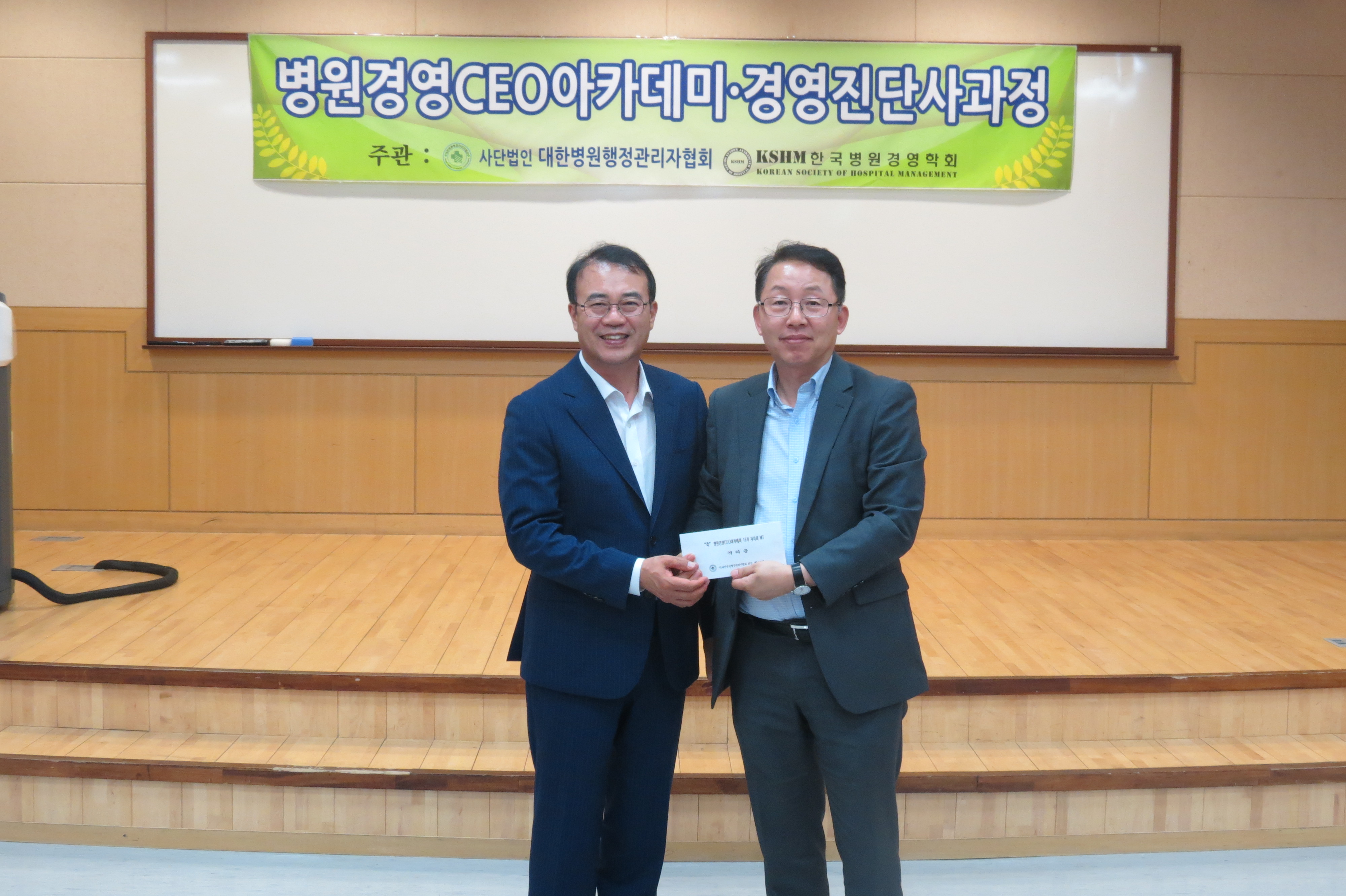 협회는 지난 7월 30일(월), 오후6시 연세대 보건대학원에서 병원경영CEO아카데미 1학기 종강식을 가졌다. 이날 행사에서는 16기 자치회에 격려금을 전달하였으며, 1학기 동안의 노고를 치하하고 상호 격려하는 시간으로 이루어 졌다. 2학기 과정의 개강은 9월 3일(월), 오후6시 연세대 보건대학원 210호에서 진행 될 예정이다.