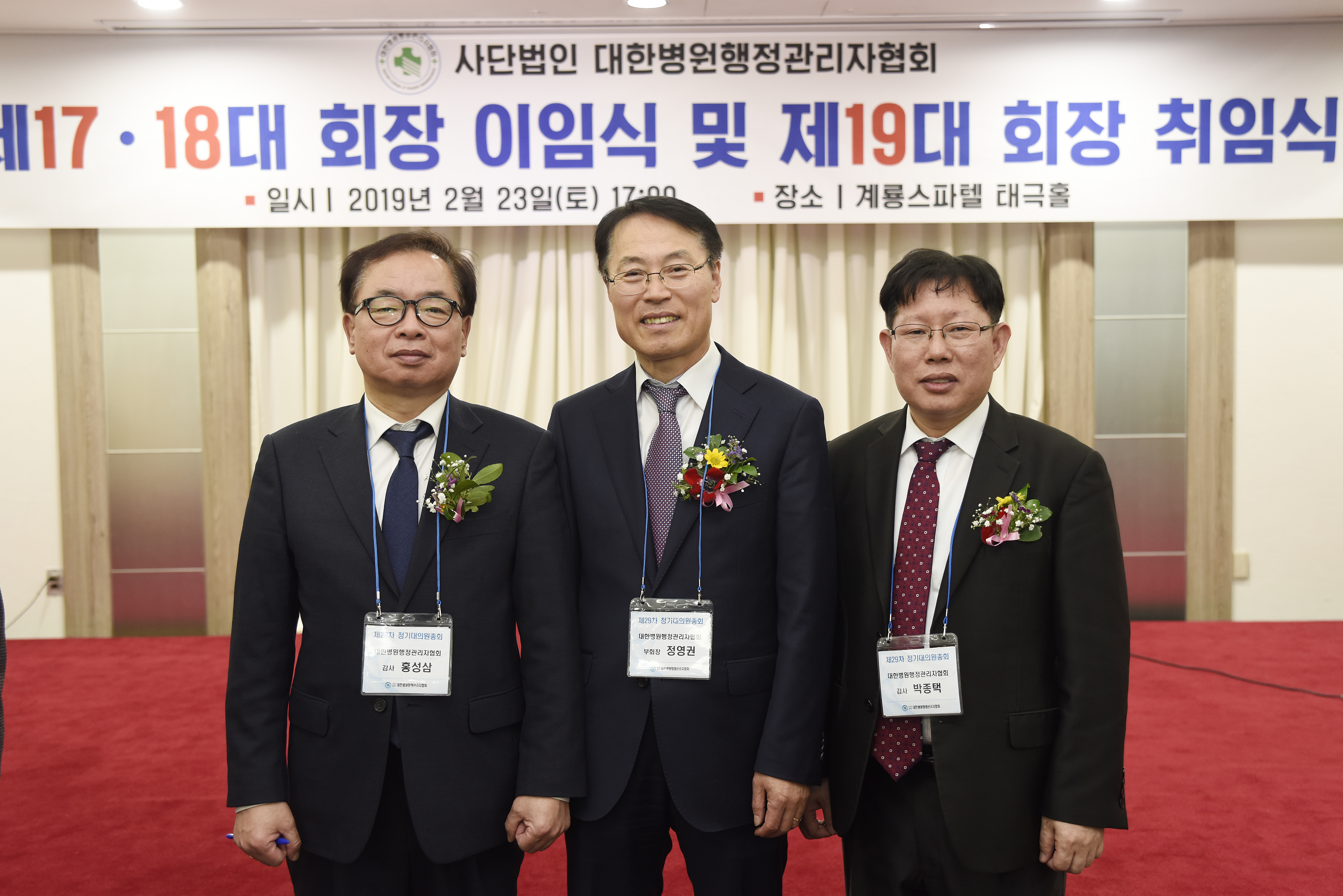 정영권 신임 회장 “협회의 새로운 도약과 활로 모색하겠다” 제29차 정기대의원총회가 지난 2월 23일(토), 오후5시 계룡스파텔 태극홀에서 전국 18개 시·도회 120여명의 대의원이 모인 가운데 진행 되었다. 이날 총회에서는 제19대 임원 선출 및 2019년도 사업계획을 확정했다. 제19대 회장선거에는 서울특별시 보라매병원 사무국장 정영권 후보가 단독 출마했으며, 감사에는 홍성삼(서울아산병원 후생사업팀장), 박종택(서울성모병원 원무팀장) 전 감사가 후보로 출마했다. 이날 총회에서는 만장일치로 19대 회장에 정영권 후보를 감사에는 홍성삼·박종택 후보를 추대했다. 총회 의결로 위임된 부회장 및 이사 선임은 추후 발표 될 예정이다. 졍영권 신임 회장은 취임 인사말에서 “지난 20여 년간 대한병원행정관리자협회와 함께 한 시간들, 그리고 서울대병원 및 서울시보라매병원 사무국장으로 재직한 32년의 병원행정 경험과 시간들이 주마등처럼 스쳐간다” 며 “부족하지만 협회 발전의 새로운 미래를 열어 가는데 최선을 다해 노력하겠다” 고 밝혔다. 또한 정영권 신임 회장은 “최근 면허를 기반으로 하는 여러 직능 단체는 병원행정 영역을 위협하고 있는 상황” 이라며 협회가 직면한 어려운 상황을 극복하고 새로운 돌파구를 개척해 나가겠다” 고 말했다. 마지막으로 정 신임 회장은 “협회 회원 여러분들의 성원과 지혜가 더해진다면 우리 협회는 새로운 활로를 열고 도약을 모색할 수 있으리라 굳게 믿는다” 며 “저와 더불어 임원 및 대의원 여러분들의 협회 사랑이 하나가 되어 우리 협회가 도약을 모색할 수 있도록 많은 협조와 성원을 부탁드린다” 고 밝혔다. 정영권 신임 회장은 협회 운영 방안으로 △중앙회와 시도회간 소통과 화합의 채널 구축 △회관 재건축 등 중장기 종합 계획 수립 및 뉴 비전 실현 △획기적인 회원 증대 방안 마련 및 회원과 회비 관리시스템 구축 △가칭 ‘원무행정사’ 등 새로운 병원행정 실무 자격 신설 △회비 수입 구조 평생회비 중심으로 다변화 및 수익사업 발굴과 기부금 활성화를 위한 발전후원회 구성 △병원행정사 취업을 위한 산학협력 및 회원 권익보호 증진 등을 제시했다. 정영권 신임 회장은 한양대 병원행정 석사, 가천대 보건학 박사 출신으로 서울대병원 교육, 인사, 홍보대외협력, 비서실, 원무, 재무 등을 거쳐 현재 서울시보라매병원 사무국장을 역임하고 있으며, 협회 부회장 겸 대학병원회장으로 활동하고 있다. 한편 이날 정기대의원 총회에서는 올해 주요 사업 추진 계획으로 △회원 서비스 개선 및 조직 정비를 통한 회비증대방안 마련 △병원행정사 및 건강보험사 자격시험 실시 △회원관리 전산시스템 2단계 구축 △협회 자격증 공신력 확보를 위한 전담 추진팀 구성 △회관 재건축 추진팀 구성 △병원행정관리 관련 수가체계 개선 TFT 운영 △미래발전위원회 제언 검토 및 협회발전 시행방안 마련 등을 마련했다. 그리고, 올해 사업에 필요한 예산 10억 3930만원으로 의결했다. 또한, 같은 날 오후3시 계룡스파텔 백두홀에서 정기이사회를 개최하여 2018년도 결산 및 감사보고와 2019년도 사업계획 및 예산(안)에 관한 건을 의결 하였다.