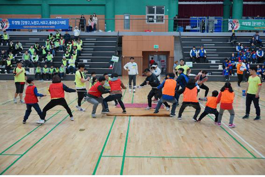 ‘제25회 대한병원행정관리자협회 서울특별시회 체육대회 및 가족축제’가 지난 4월 14일(일), 서울시 동대문구 소재 동대문구 체육관에서 성황리에 개최되었다. 이번 행사에는 중랑구회가 주최하여 서울특별시회 회원들의 친목을 도모하고 유대를 강화하는 자리가 되었으며, 500여명의 회원 및 가족들이 참가하여 상호 우애를 다지고 심신을 재충전하는 시간을 가졌다. 각 지회별 선수단 입장식에 이어 김인철 회장의 개회식 선언과 함께, 정영권 협회장은 축하와 격려사를 통해 회원과 가족들의 사기에 더욱 힘을 실어 주었다. 이번 체육대회는 “함께 즐기고 어우러지며 모두 함께 하는 가족축제”라는 주제로 경쟁이 아닌 친목과 단결을 목적으로 팀 구성을 하였으며 레크리에이션과 명랑운동회 형식으로 진행하여 더 큰 가족축제의 장이 되었다. 종합우승팀은 강북도봉구, 강남구, 광진구, 동부지회가 한 팀이 된 ‘화합팀’이 차지했고, 단체줄넘기는 성북구지회, 단체릴레이는 노원구지회가 각각 우승하였다.