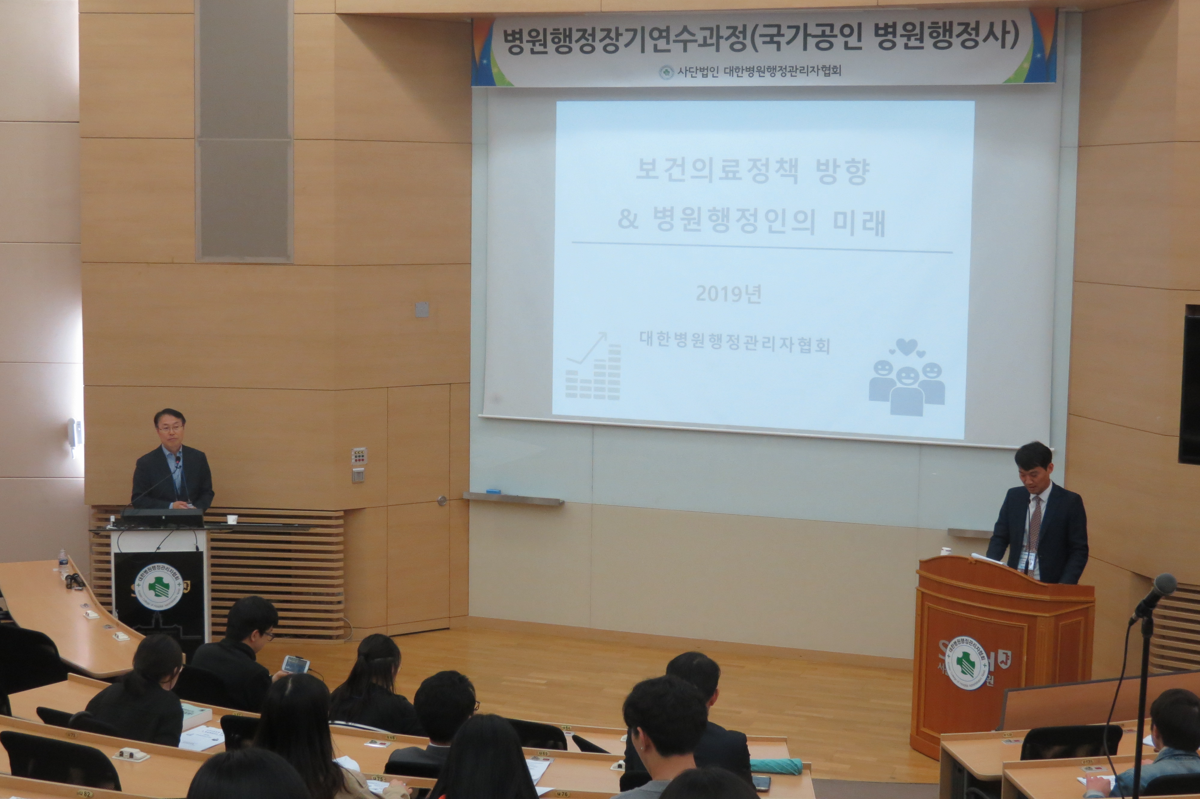 이날 정영권 협회장은 개회사를 통해 “오늘부터 시작되는 장기연수교육과정은 병원행정인에게 필요한 기본적인 병원과 병원경영의 전반에 대하여 이론뿐만 아니라 실무적인 부분까지 아우르는 전문적인 과정이다. 매주 저녁에 강의를 듣는 과정이 쉽지 않은 시간이겠지만 학습과정을 통해서 여러분이 속한 병원과 조직에서 경쟁력을 가지고 앞서가는 병원행정인이 될 수 있기를 바란다.” 라고 전했다. 이어지는 특강은 “보건의료정책방향과 병원행정인의 미래”라는 주제로 강의가 진행되었으며, 이후 워크숍에서는 연수생 모두가 10월까지 진행되는 연수과정에 한명의 낙오자 없이 모두 수료를 다짐하며 마무리하였다.