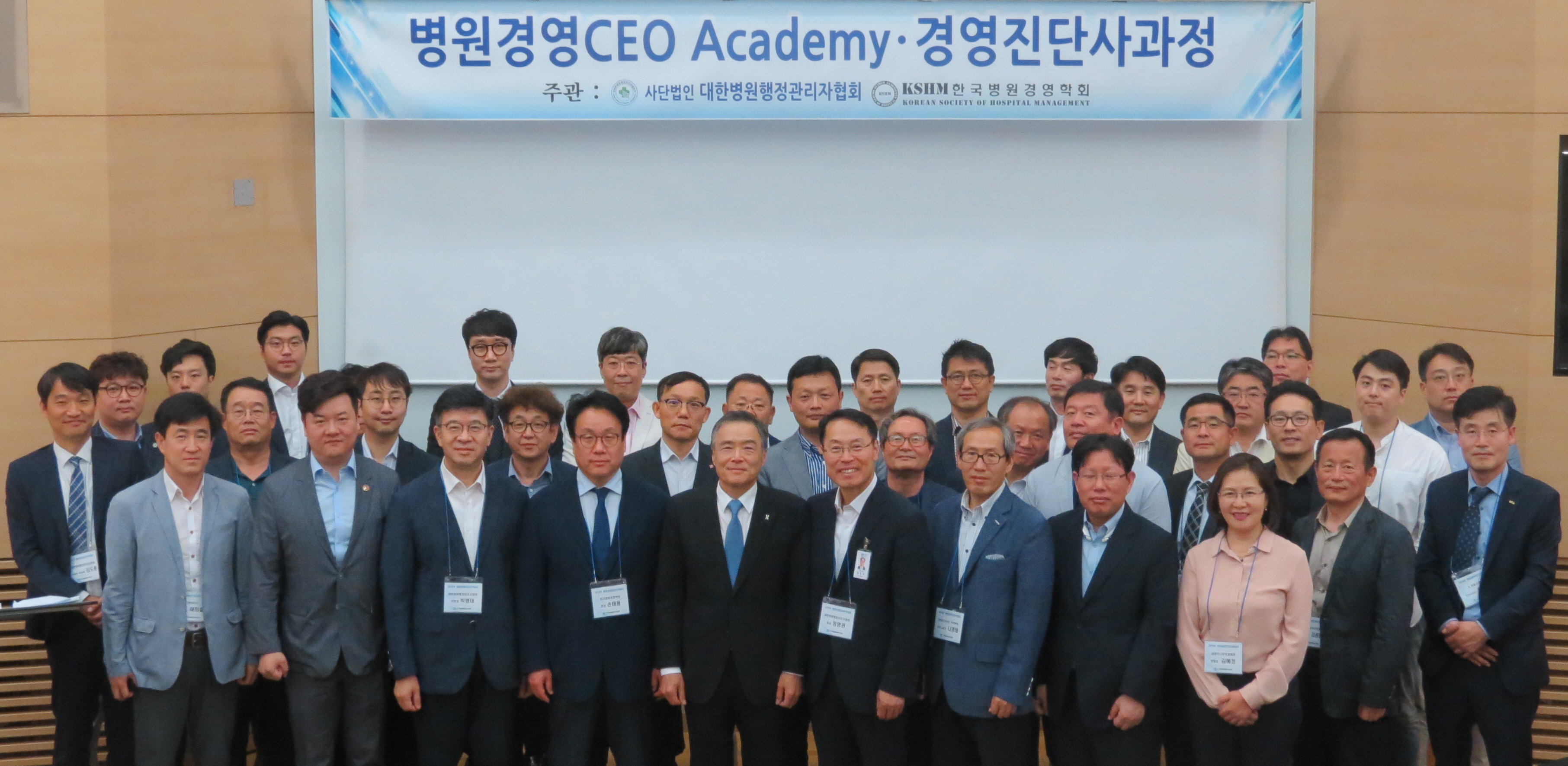 2019년 병원경영CEO Academy ‧ 경영진단사과정이 우리협회(회장 정영권)와 한국병원경영학회(회장 손태용)와 공동으로 서울대학교 어린이병원에서 5월 29(수), 오후6시에 19주간의 일정으로 개강하였다. 개강식은 내빈소개를 시작으로 협회장 인사말씀과 손태용 한국병원경영학회장 축사 및 한국병원경영학회에 지원금 전달이 있었으며, 개강특강으로 “건강보험 보장성 강화정책과 건강보험심사평가원”의 주제로 김승택 건강보험심사평가원장의 강의가 이어졌다. 이날 개강식은 정영권 협회장, 김승택 건강보험심사평가원장, 손태용 한국병원경영학회장, 박병태 대학병원회장, 김인철 서울특별시회장, 이은규 인천광역시회장, 김명호 병원경영진단사회장, 박종택 감사, 김재선 미래발전위원장, 서원식 산학협력교수회장, 이필복 이사, 이해식 이사, 박상조 이사, 이은제 교육부원장, 이광인 유한대학교 교수, 정문봉 병원경영진단사회 수석부회장, 윤원국 병원경영진단사회 사무국장, 이광호 노원을지병원 행정부원장, 김종필 충남대학교병원 원무과장과 연수생 등 50여명이 참석한 가운데 진행되었다. 본 과정은 매회 2강좌씩 총 57시간을 이수하게 되는데 의료산업과 의료경영 전반에 대한 실무적인 지식은 물론 선진 의료경영을 이끌 병원경영CEO로서의 자질을 높이는데 필요한 다양한 프로그램으로 준비하였다. 특히 2019년도 교과과정에는 병원경영진단사로서의 핵심역량을 강화할 수 있도록 진단분석과정을 ‘경영전략진단’ ‘조직인사진단’ ‘생산성진단’ ‘재무진단’ 등 4개 부문의 진단사례중심으로 편성을 강화하고, 이에 적합한 전문가들로 강사진을 새롭게 구성함으로써 "병원경영진단사"가 역할을 충분히 수행할 수 있도록 능력을 배양하는데 중점을 두었다. 또한, 병원경영CEO아카데미과정 수료 후에 병원경영진단사 자격시험을 볼 수 있어 보건의료계 지도자, 관련기관 및 단체의 임원, 공직자와 교수들의 높은 관심을 사고 있다. 협회는 현재까지 456명의 병원경영진단사를 배출, 협회에서 시행하는 각종 교육과정과 좋은병원만들기 경영진단사업 등에 병원경영진단사와 함께 활동하고 있다.