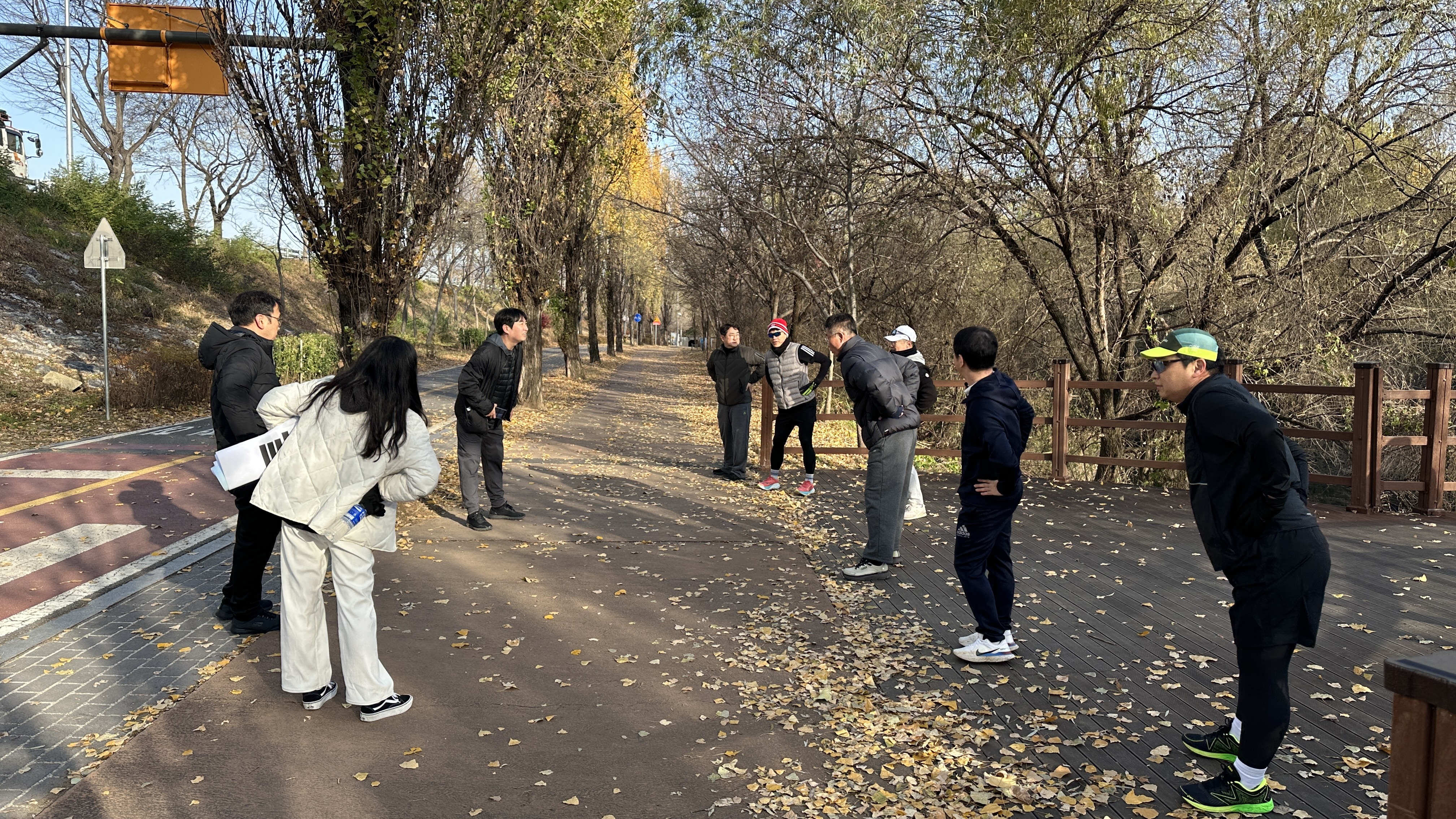 러닝 시작 전 김병권 팀장의 구호에 맞춰 몸풀기 운동을 한 후, 본격적으로 달리기 시작 하였다.